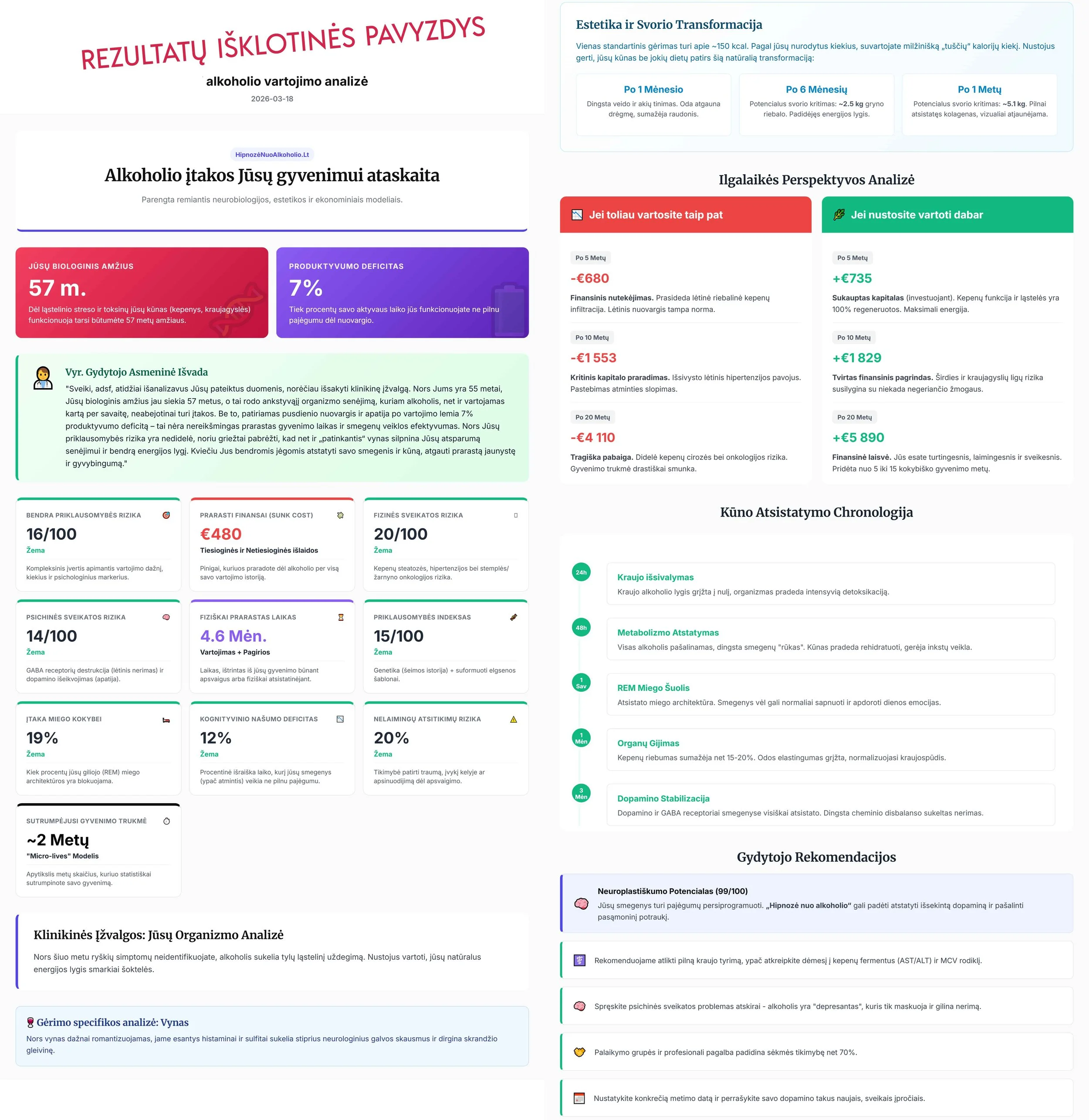 Skaičiuojamas jūsų biologinis amžius, produktyvumo deficitas ir vertinama neurometabolinė žala.